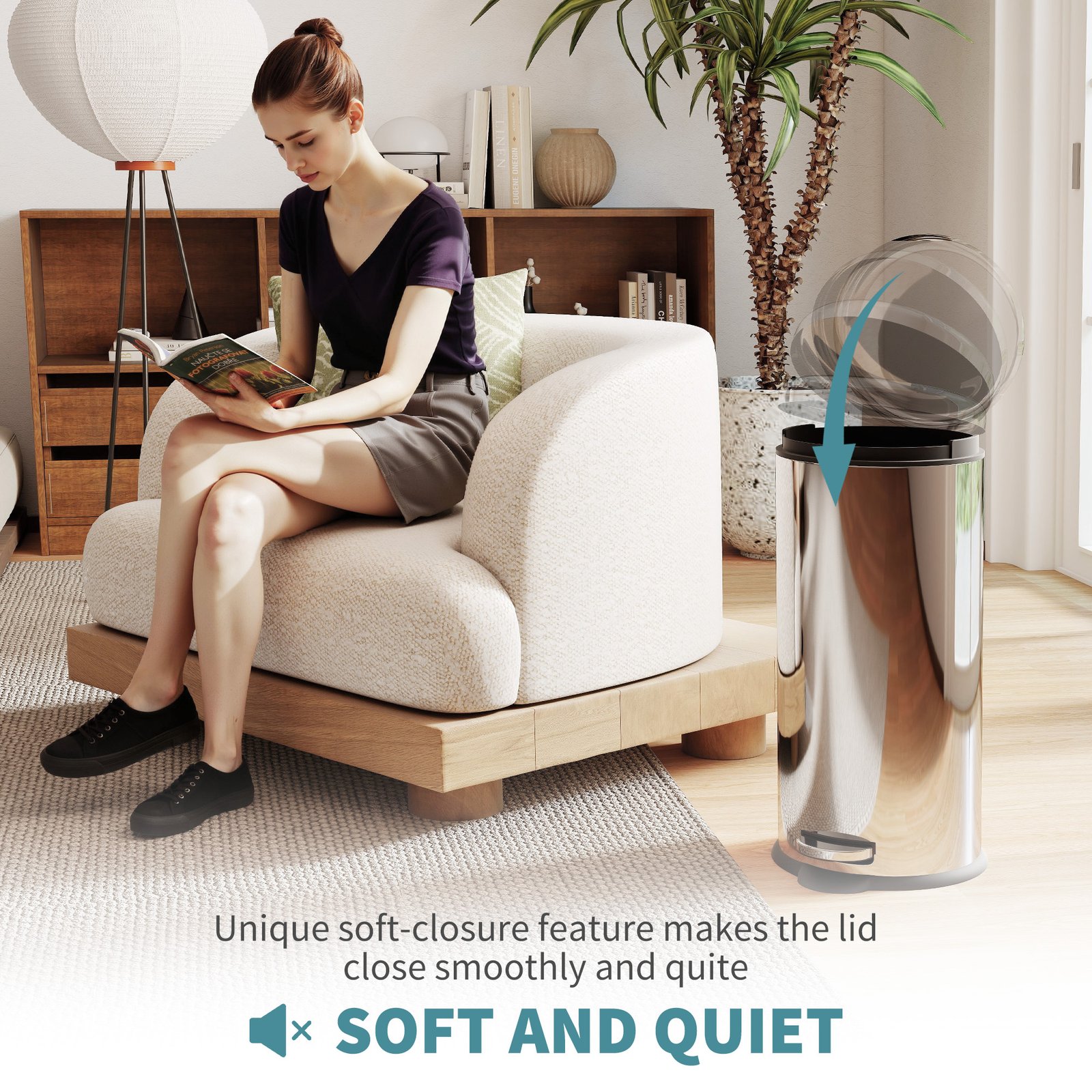 - Anti-slip floor and foot pedal to lift and close lid