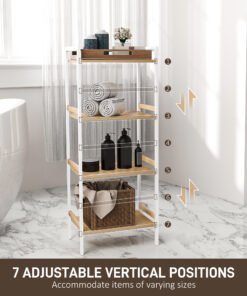 This HOMCOM bathroom shelf unit is a simple and spacious piece, for keeping all essentials in one spot. Made from bamboo, it is naturally strong and moisture resistant. Comes with four shelves so there’s plenty of storage; with seven available levels to set each shelf to a position of your choice.