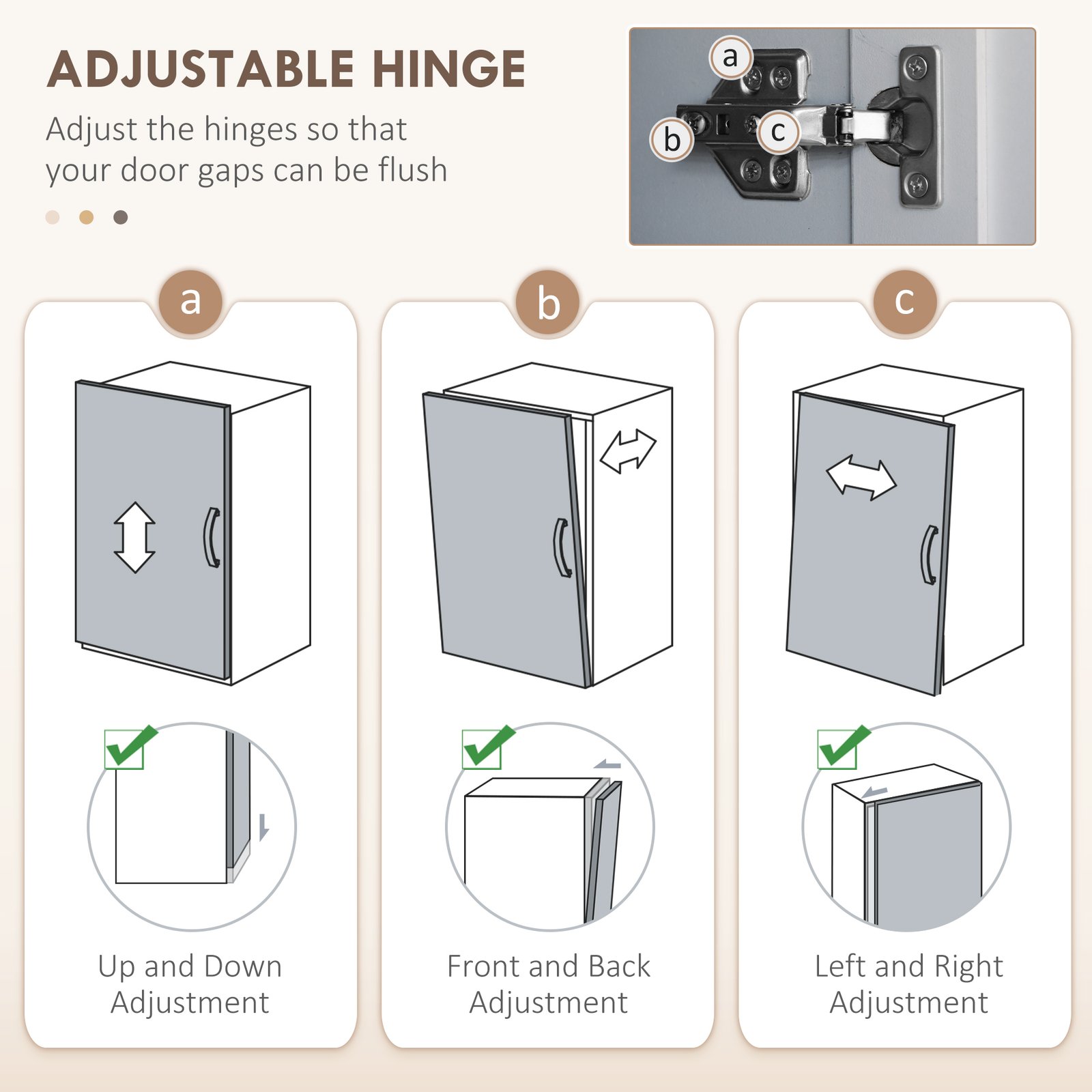• Fully adjustable storage: Featuring six spacious storage areas with movable shelves, this cabinet allows you to customise the interior layout to suit tall cookware, small appliances, food containers or cleaning supplies.