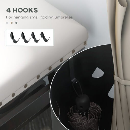 Rainy days mean umbrellas. And umbrellas can result in wet floors. Merging style and function, this HOMCOM stand gives umbrellas their own storage place, whilst bringing in a touch of style. Made from galvanised steel, this umbrella stand is strong and resistant to rusting. The 41H x Φ17cm size holds two large umbrellas, with four hooks included for smaller brollies. Comes with a removable bottom tray to easily remove any liquid.