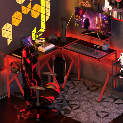 - L shaped corner desk provide lots of space for your devices and other gaming essentials