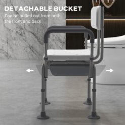HOMCOM Height Adjustable Shower Stool with Arms and Back, Non-Slip Bedside Commode with Detachable Bucket for Elderly, White