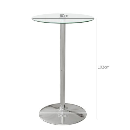 Make dining times as relaxing and as fancy as you want, thanks to this HOMCOM breakfast bar table. This bistro table pairs a sleek polished metal base with a tempered glass top. The frame is made from galvanised steel for a strong and supportive base, with a non-slip foot pad for an extra touch of support. A centrepiece to bring you and company together, morning and evening.