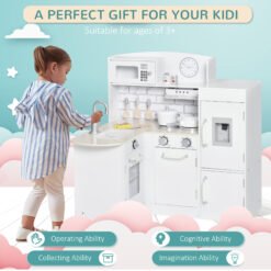 For imaginations large and small, this HOMCOM kitchen playset is a must for every playtime. Comes with a complete set of accessories to give them lots to play around with. Helps develop fine motor, cognitive, social and counting skills. It’s realistic too, thanks to the working drinking fountain, fillable sink and opening door.