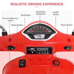 Adventure awaits children with this luxurious Vespa Ride-On! With 3km/h maximum drive speed is safe for children ages 3-6 years in age. This car provides a realistic experience for your child with its side mirrors, working horn & headlights, and a dashboard light. Bring this ride-on toy motorcycle home to help encourage your children to play outside more.