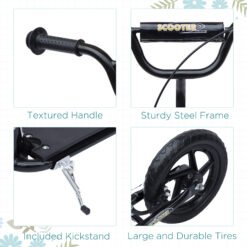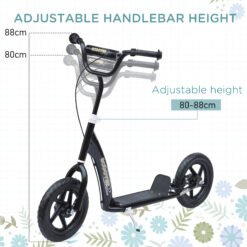An outdoor classic, this HOMCOM kids scooter delivers fun and excitement with every ride. Suitable for ages 5-12, the adjustable handlebars grow with your child for long-term use. Its solid steel frame, wide non-slip foot deck and responsive rear brake keep rides safe and steady. With smooth-rolling 12″ wheels, it’s great for school runs, park adventures or just cruising the street wherever they go, the fun follows.