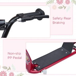 An outdoor classic, this HOMCOM kids scooter delivers fun and excitement with every ride. Suitable for ages 5-12, the adjustable handlebars grow with your child for long-term use. Its solid steel frame, wide non-slip foot deck and responsive rear brake keep rides safe and steady. With smooth-rolling 12″ wheels, it’s great for school runs, park adventures or just cruising the street wherever they go, the fun follows.