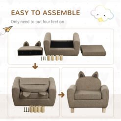 Children sit comfortably with this kids chair from HOMCOM. Frame made from eucalyptus wood for a rigid structure, it’s fitted with a padded seat for comfort, wrapped in linen upholstery for style and smoothness-to-the-skin. Storage compartment under the sofa seat for storing their personal items. High back and armrest for support as they lean back, it’s finished with four wooden legs for support.