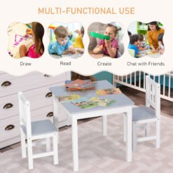 HOMCOM Kids Table and Chair Set 3 Pieces Toddler Preschoolers Desk with 2 Chairs for Indoor Study Rest Snack Time Grey