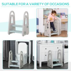 HOMCOM Kids Toddler Step Stool Ladder Kitchen Helper for Toilet Potty Training Bathroom Sink Bedroom Blue and Grey