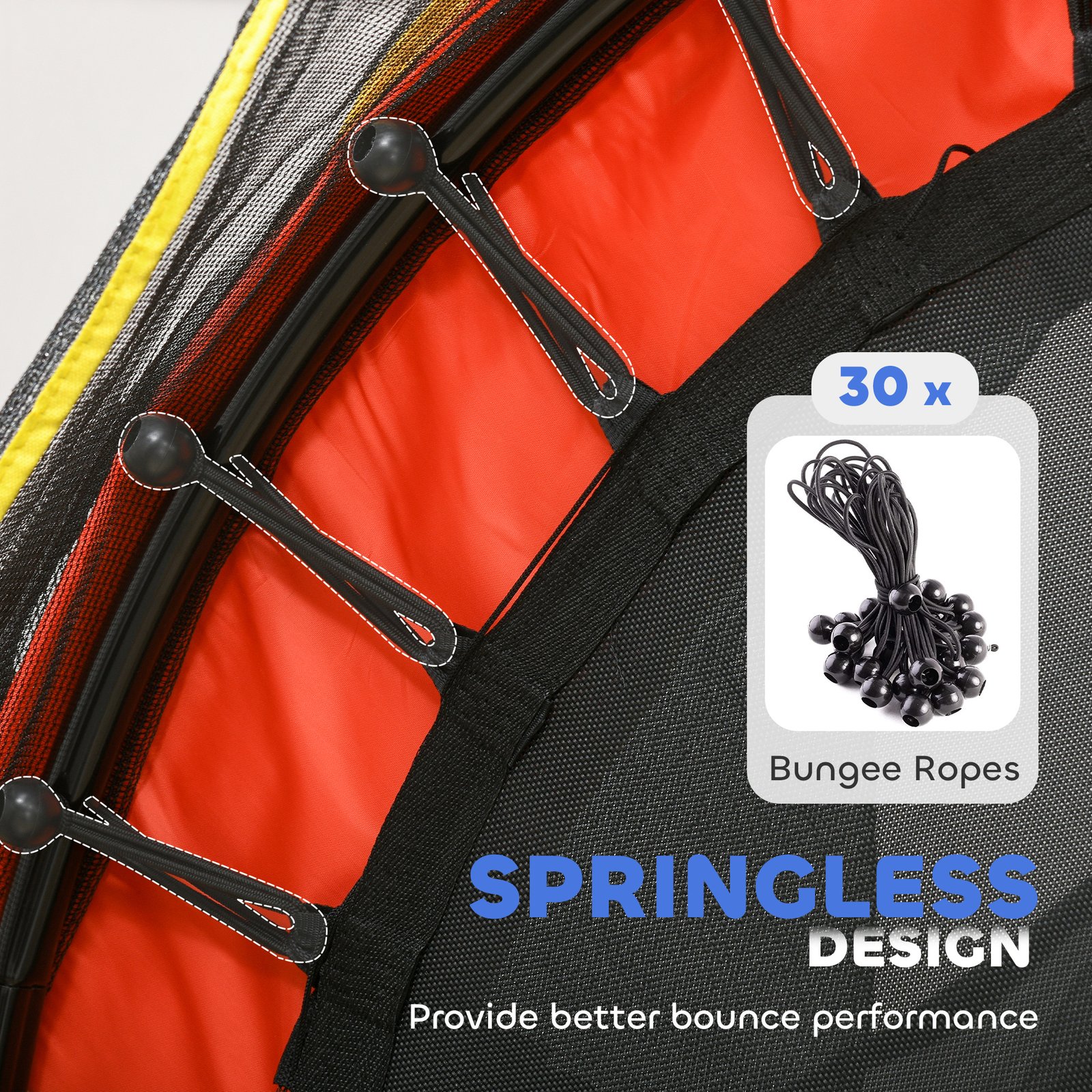 - A bungee design with high elasticity, much safer than metal springs