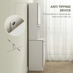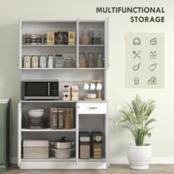 For the culinary enthusiast, the HOMCOM kitchen storage cabinet is a masterpiece of functionality. Tailored for those who revel in the art of cooking, this cabinet offers versatile storage solutions with its top and bottom cupboards, adjustable shelves, and a convenient drawer. Its sleek white finish and silver handles add a touch of modern elegance, seamlessly enhancing your kitchen’s aesthetic. Durable and stable, it provides the perfect home for your diverse collection of cookware and ingredients.