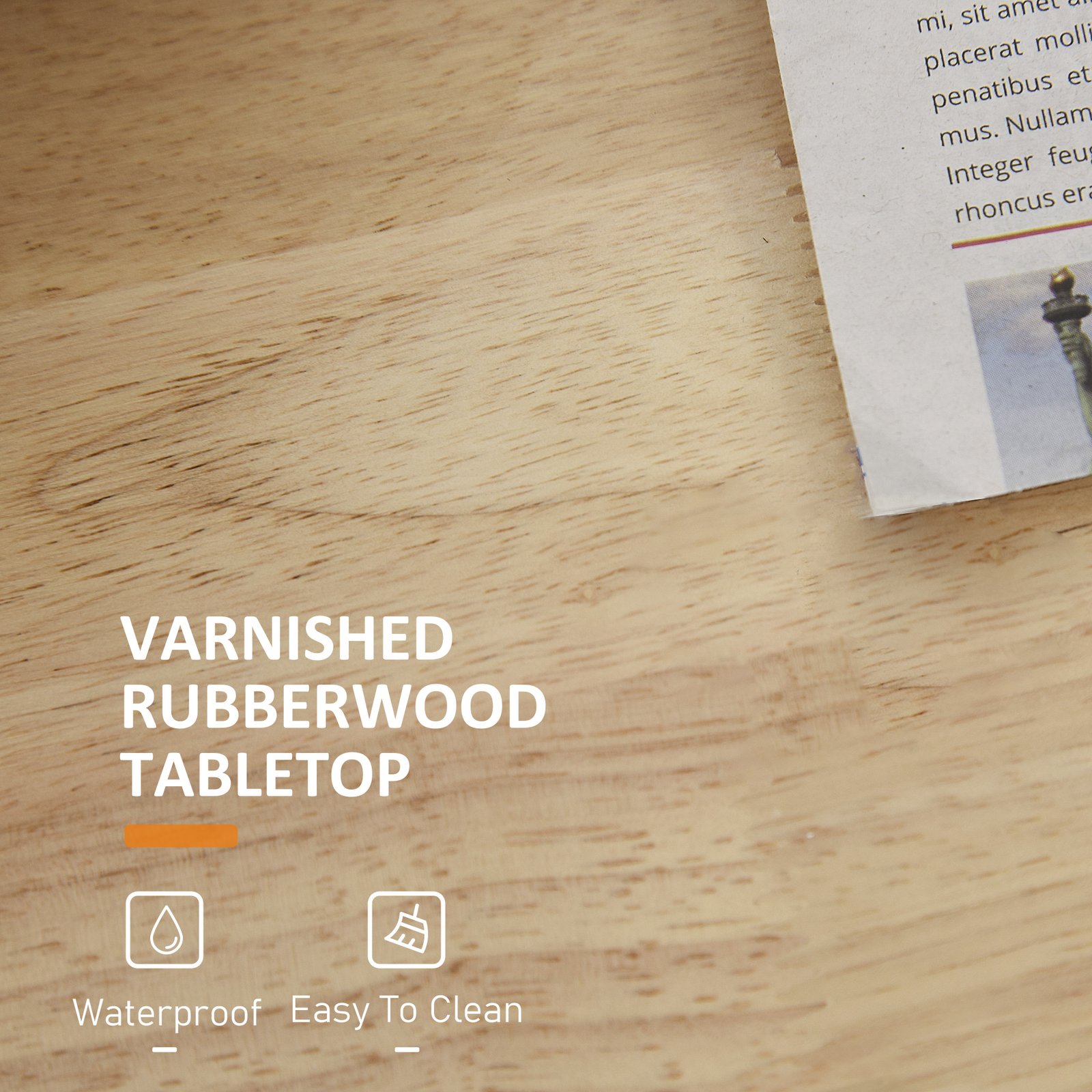 - Varnished rubberwood countertop is water-resistant and easy to clean