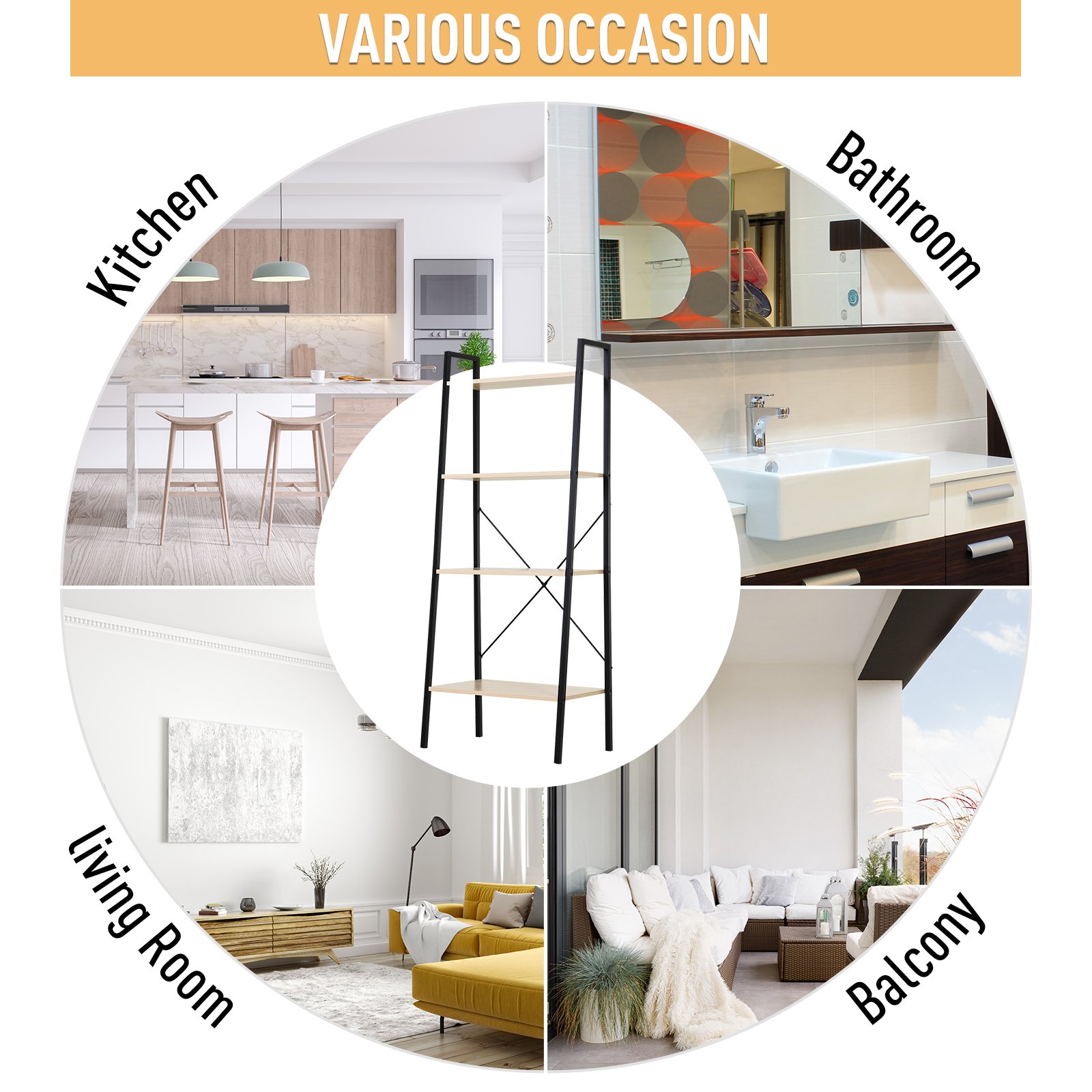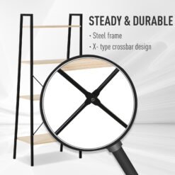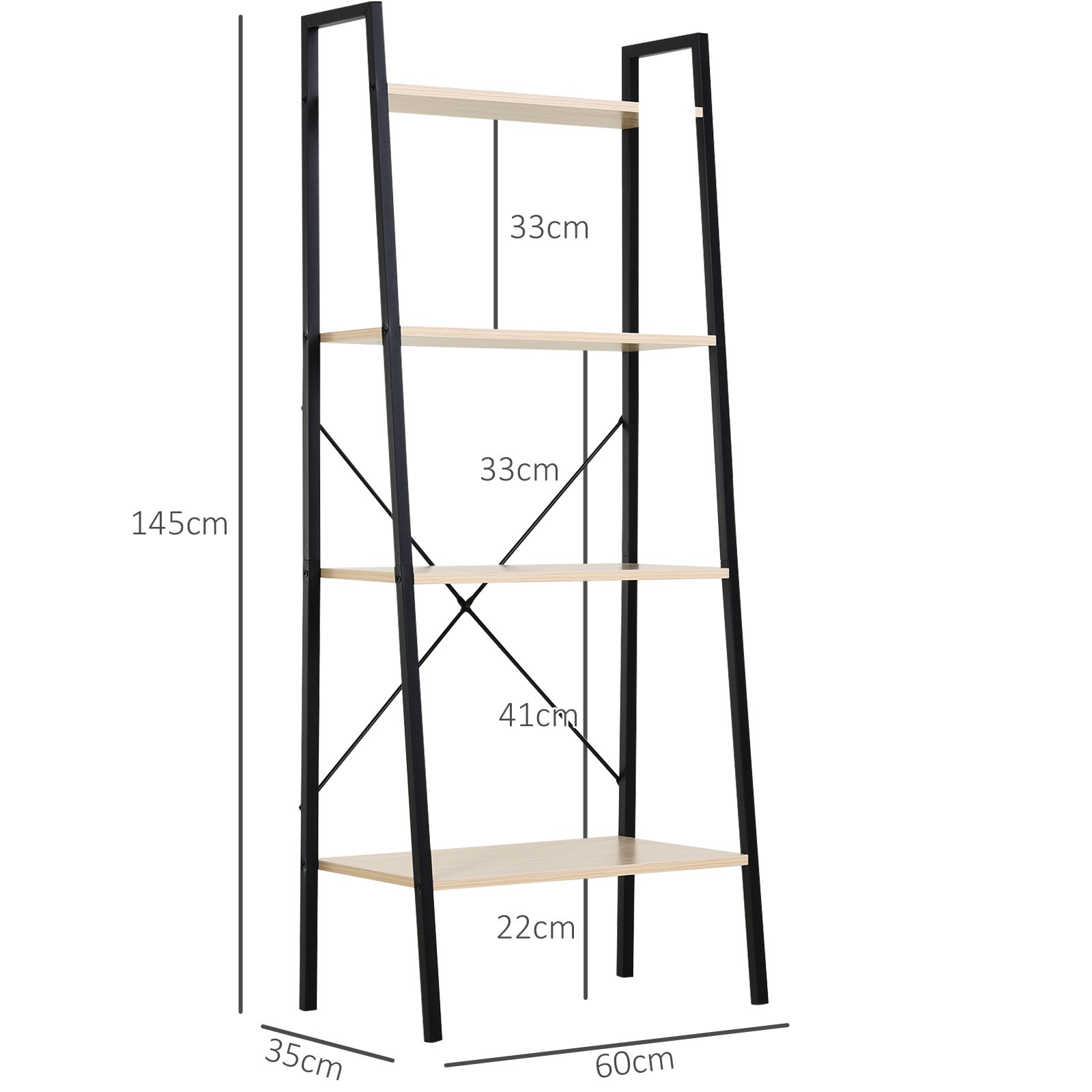 Let minimalistic design allow your pieces to take centre stage with this ladder shelving unit from HOMCOM. With a steel frame to ensure a tough standing structure, it is crafted into a four-tier design, where the wide shelves are spaced far apart for plenty of display room. The shelves are made from thick MDF with a melamine coating, making the surfaces smooth, even and easy to clean and it is finished with pads to protect the floor. An easy way to bring some subtle character into your home.
