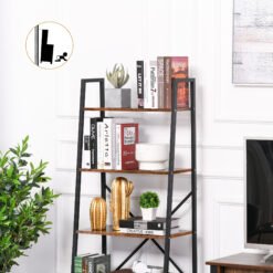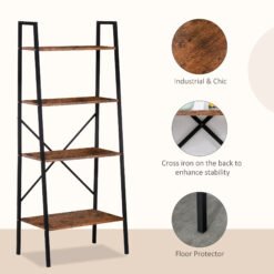 HOMCOM Ladder Shelf, Bookshelf, 4-Tier Industrial Storage Rack for Living Room, Bedroom, Kitchen, Rustic Brown and Black