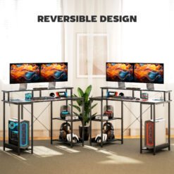 - Reversible two shelves and CPU stand for keeping all files and work essentials together