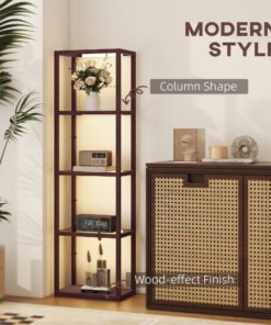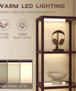 A dash of light for the warm ambience – simply pop this HOMCOM LED floor lamp with shelves into your chosen corner to start enjoying the beautiful illumination. This tall lamp is fitted with warm white LED light lines: 3000 K with three-level adjustable brightness. This bedroom lamp serves as a shelving unit with four-section storage to keep your favourite pieces on show. Tempered glass shelves add a sleek touch and help light transmission. Plug in and step on the foot switch to start enjoying.