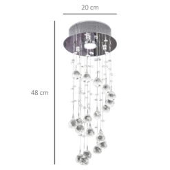 HOMCOM Metal Crystal Ceiling Light Chandelier Elegant Pendant Lamp Living Room Stairway Spiral Rain Drop Pendant Lamp Silver