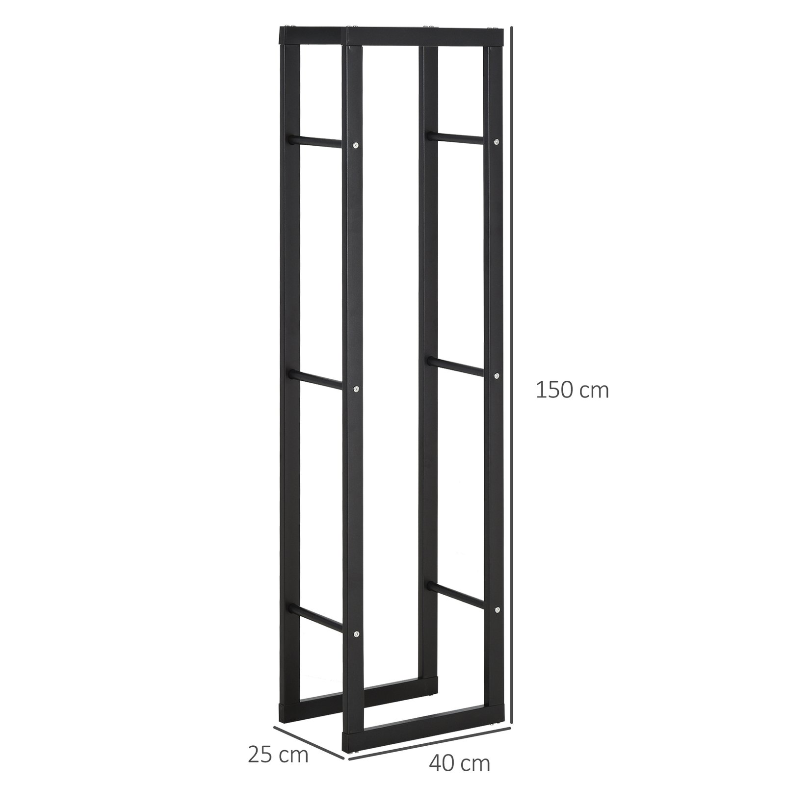 HOMCOM Metal Firewood Log Holder Tall Firewood Rack Indoor Outdoor Fireplace Wood Storage Shelf with Side Rails, Rust-Resistant, Black, 40W x 25D x 150H cm