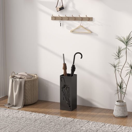 The HOMCOM umbrella storage rack is a lovely and great addition to your entrance. Featuring a removable drip tray, this umbrella stand for hallway ensures a dry, welcoming space even on drizzly days. It offers lots of room for long and folding umbrellas as well as four hooks, while the artistic cutouts add a chic touch to your entryway, blending functionality with style.
