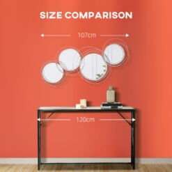Decorative and functional – what’s not to like with this mirrored wall art from HOMCOM? Here this piece features four mirrors for plenty of reflection – each framed with cut-out asymmetric circular pieces fixed together; covered in a silver-tone finish for a brush of glamour. A metal structure for lasting strength, this mirror features hooks on the back to attach to surfaces with ease – comes with a hanging kit so you have everything you need to use straight out the box.