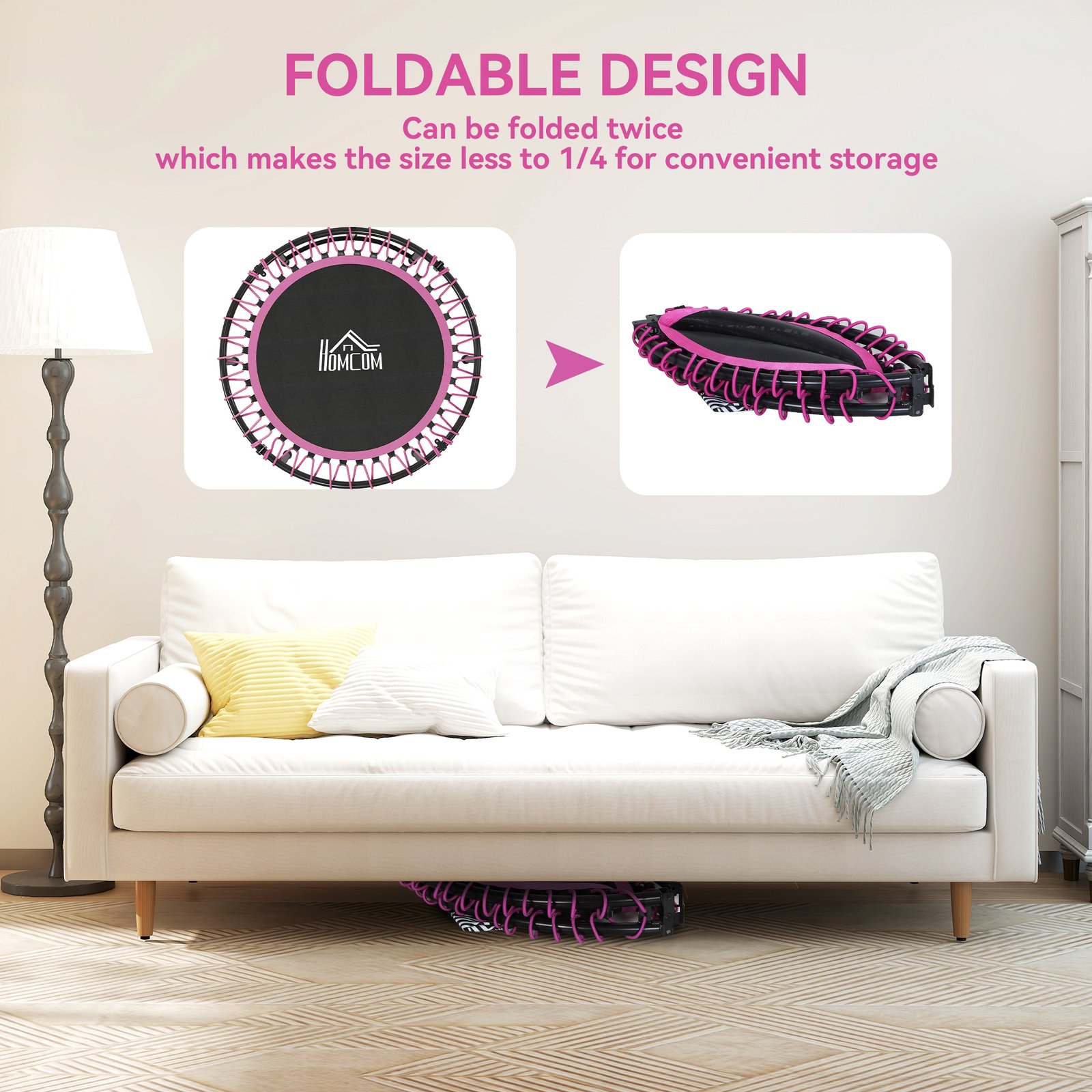 - Elastic string safely connects the jumping mat to the frame