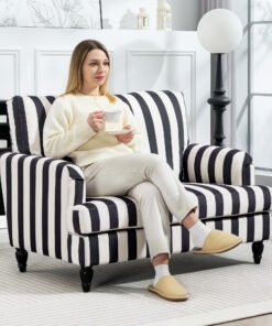 Sink into the plush comfort of the HOMCOM snuggle chair, a velvet-clad gem with a modern stripe design and chic turned legs. Its cushy high-density sponge makes it the cosiest spot in your living room or bedroom. With its extra-large seat and long armrests, this bedroom chair is the optimum nook for a relaxing retreat.