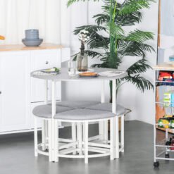 HOMCOM Modern Round Dining Table Set with 4 Upholstered Stools for Dining Room, Kitchen, Grey