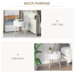The HOMCOM round end table is made from MDF and acts as a classic accent in drawing-room style. It has graceful wooden legs and has simple, elegant lines that make it a must-have addition for any living room, den or lounge. The modern coffee table has a concealed drawer that provides space to store essentials. You can coordinate this white side table with other pieces for a more cohesive appearance.