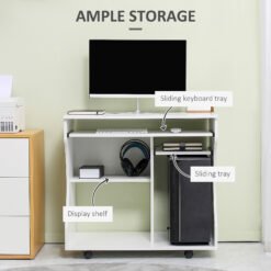 A compact place to work, wherever you want with this HOMCOM small computer desk. It’s fitted with wheels and brakes to move around wherever you want. With the spacious desktop, two pull-out keyboard trays, a CPU shelf and two shelves, there’s plenty of space to work from and keep everything you need in one spot.