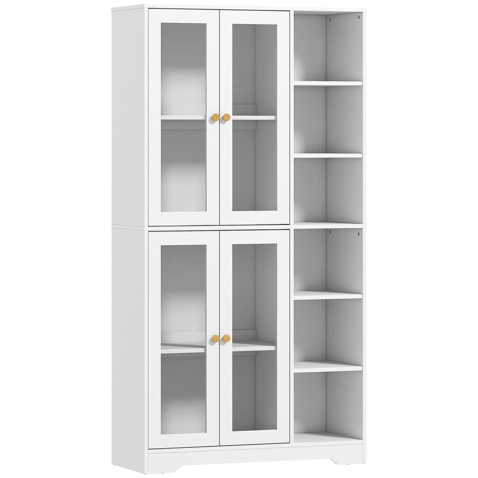 All kitchenware essentials in a beautiful place: this HOMCOM kitchen cupboard. A multi-storage design – with two cupboards and six side shelves. Four of the side shelves are adjustable to three positions – cater for smaller and larger items as needed. Finished with soft-close hinges to keep your space quiet and peaceful.