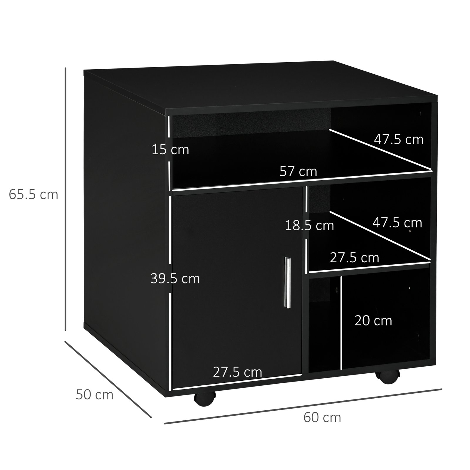 Optimise your office printing area with this cabinet stand from HOMCOM. It is made with a large tabletop to place your printer, an open compartment for easy access to essentials, two open shelves and a bottom cupboard with two shelves – keeping everything you need hidden away and organised. The inner shelf is adjustable if you need different heights. Four wheels for easy movement, with two being lockable to keep the unit stationery. A must for keeping the shared essentials in an obvious place.
