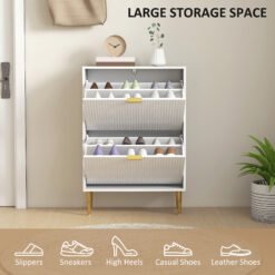 - Two flip drawers can store up to 6-12 pairs of shoes