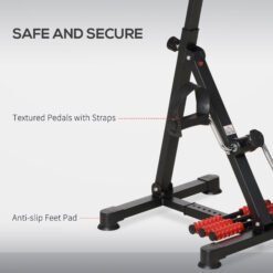 - Non-slip feet pads and secure straps add stability