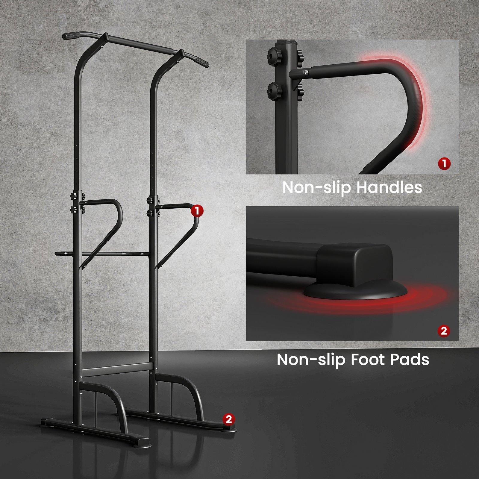HOMCOM Power Tower Dip Station Pull Up Bar Multi-Function Push Up Equipment with Adjustable Height for Home Gym Strength Training Workout Fitness