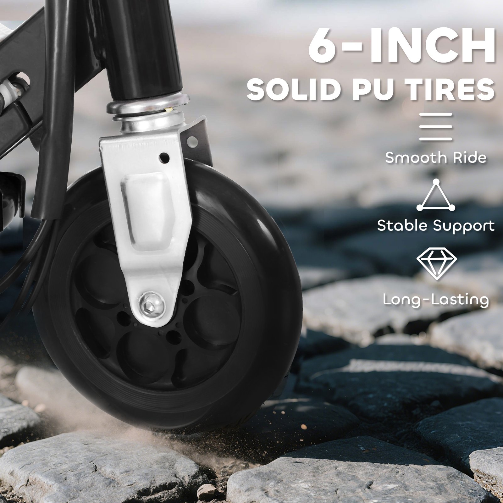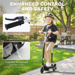 Fun and excitement await with this HOMCOM electric scooter, reaching speeds of up to 10km/h and stopping safely with reliable brakes. A full charge gives 6?8km of riding, great for daily adventures. With adjustable handlebars and seat, it grows with your child ? suitable for ages 7?12 years. When the fun’s over, just fold it up for compact, easy storage until the next ride!