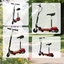 HOMCOM Powered Electric Scooter Ride-On, with Brakes, Adjustable Seat, Adjustable Handlebars, Red