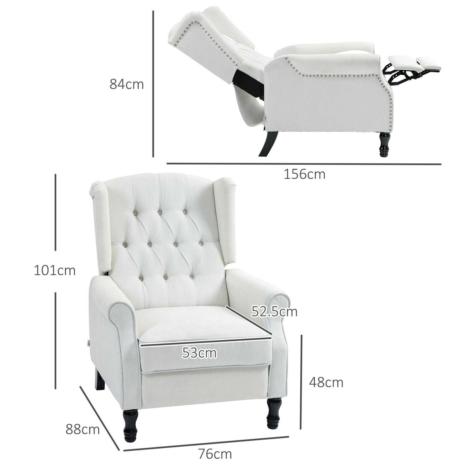 Take your relaxation to the next level with this HOMCOM recliner armchair. A strong, supportive wooden frame, it’s fitted with thick sponge for comfort. The back reclines to 150° – lie back and relax to a position you want. Tufted on the back for a vintage and traditional look, bringing character into your space. Its finished with linen-look upholstery for easy maintenance and four solid wood legs to keep it stable on the floor.