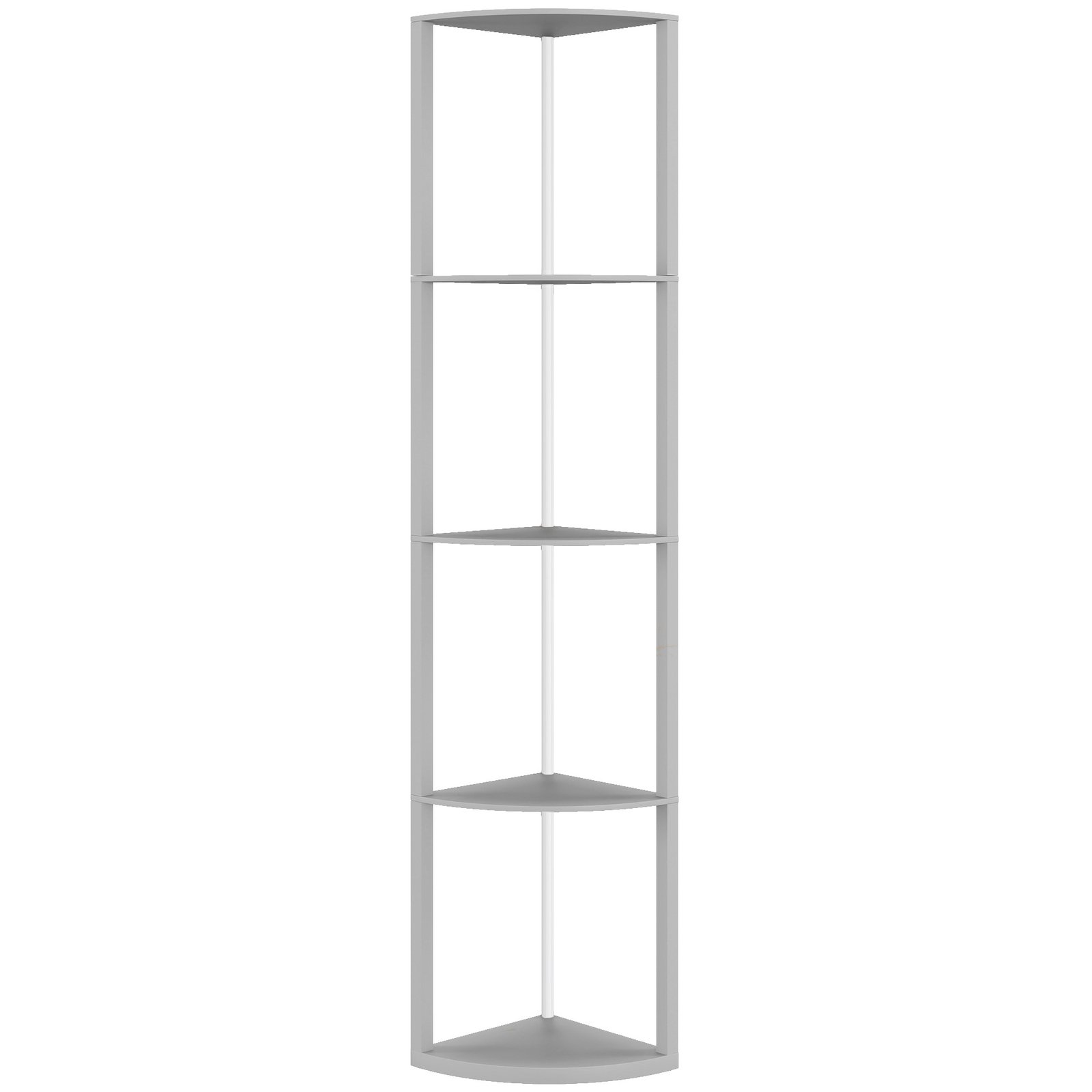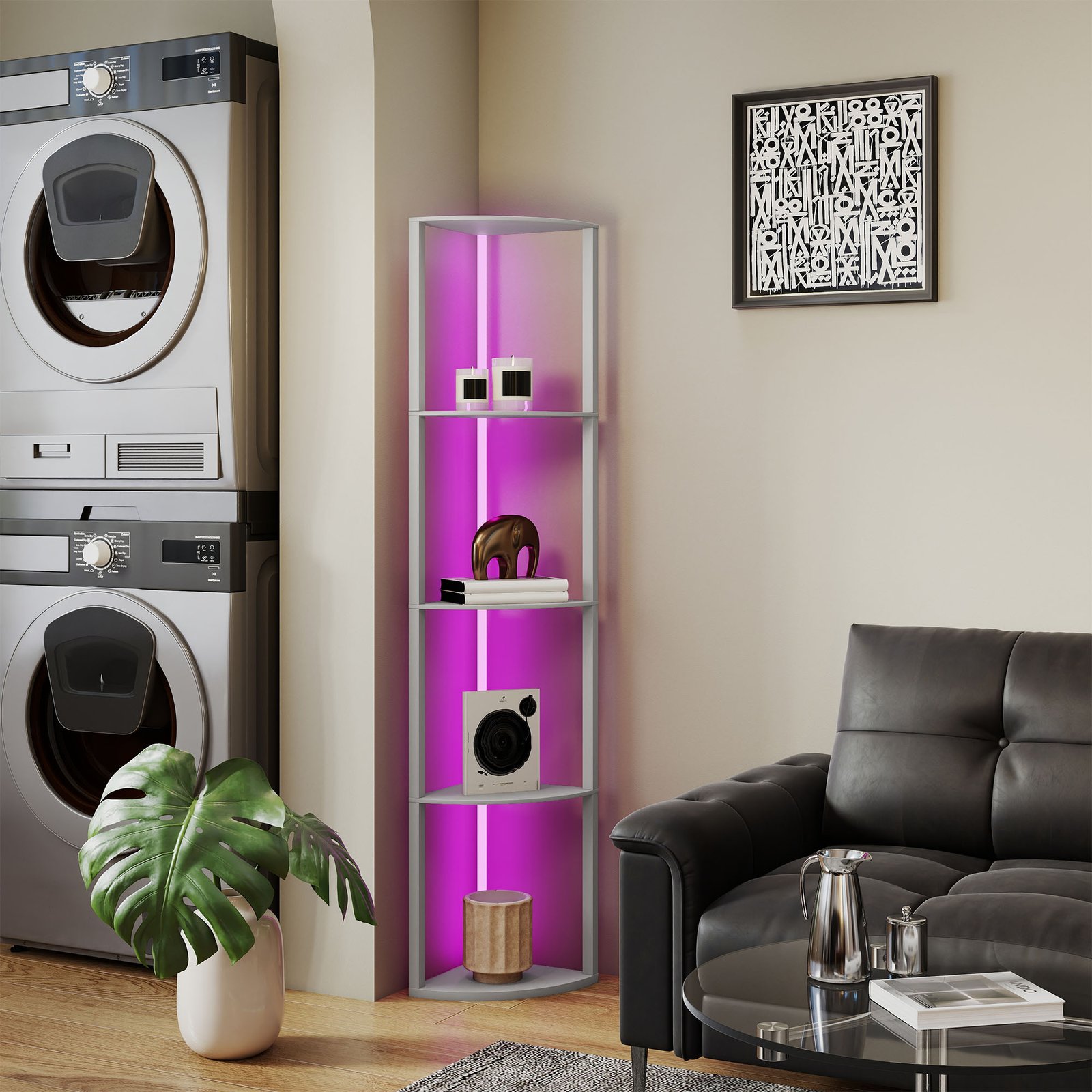 HOMCOM RGB LED Floor Lamp with Shelves, 5-Tier Dimmable Standing Lamp with Adjustable Brightness and Remote Control, Modern Corner Display Shelf Unit for Living Room Bedroom Office, Grey
