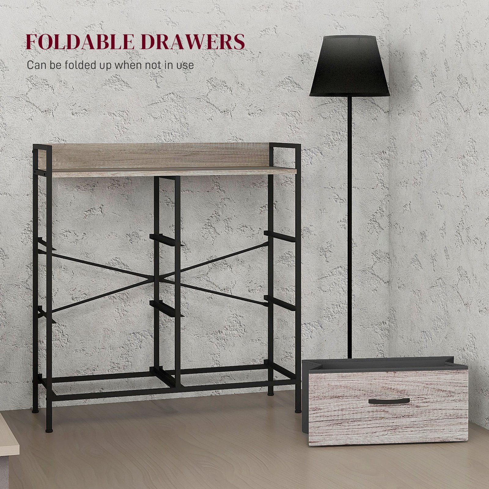 HOMCOM Rustic Chest of Six Fabric Drawers - Grey Wood Effect