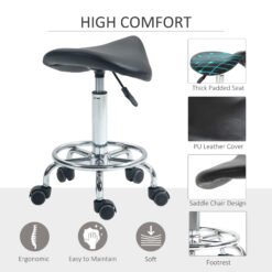 Discover the charm of ergonomic design with the HOMCOM Saddle Chair, your next favourite beauty chair and hairdressing chair. Its unique saddle shape promotes a healthier posture, making it an excellent choice for any beauty, workshop, or vanity setting. Glide effortlessly with its smooth swivel chair functionality, ensuring you can move around your workspace with ease. A stylish and practical addition to any room.