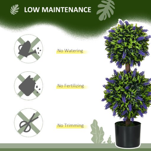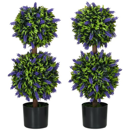 Say hello to year-round beautiful greenery, with 0 upkeep and fuss. This set of two HOMCOM faux lavender trees are great for both indoors and outdoors – looking like the real thing, but made from tough plastic. With leaves and lavender flowers, outdoor artificial plants are voluptuous – adopting texture and colour for extra real-ness. Both faux plants come with soil-look cemented pots, weighing them down and ensuring you have everything in single package.