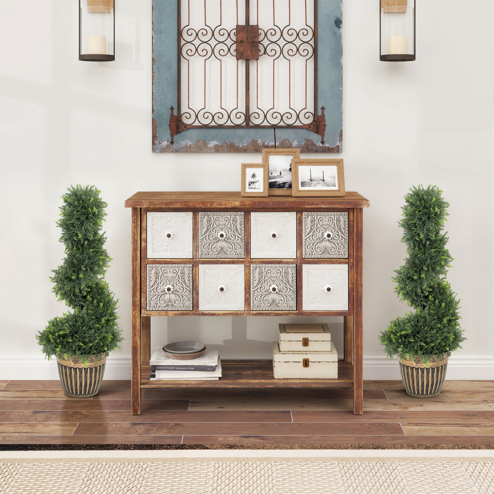 • Elegant spiral design: Each artificial spiral cypress topiary features a sculpted, twisting shape with dense, vibrant leaves, bringing a refined, decorative touch to entryways, patios, or indoor corners.
