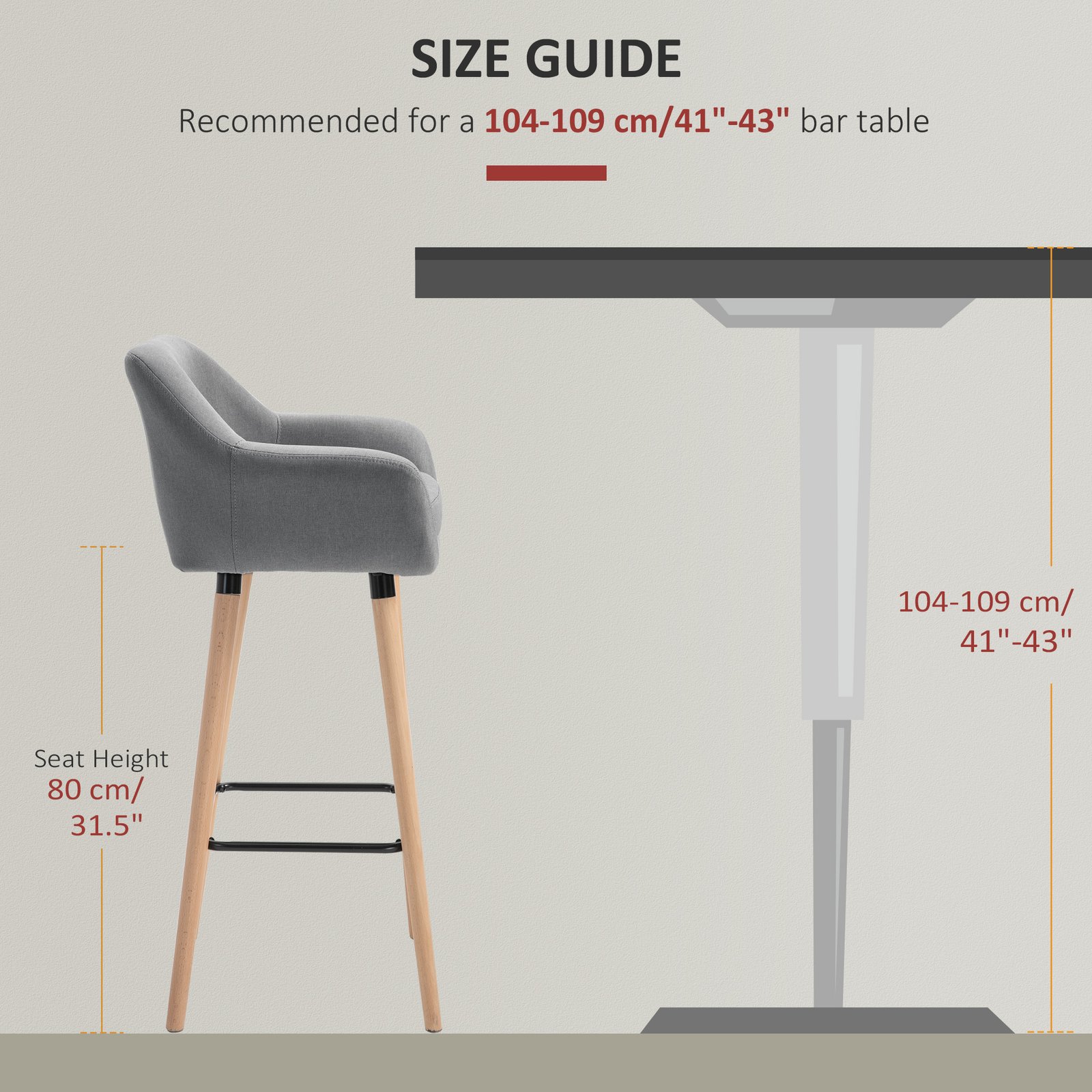 Elevate your kitchen’s aesthetic with the modern elegance of HOMCOM’s bar stools, designed for families who value style and comfort. These stools, with their breathable linen upholstery, seamlessly blend into contemporary home decor while providing a cozy seating experience. The solid wood legs ensure robust support, complemented by footrests for added relaxation. The tub-shaped seats and padded cushions offer a chic yet comfortable touch, perfect for leisurely breakfasts or evening gatherings. Transform your dining area into a harmonious space with this matching set of two, embodying both sophistication and practicality.