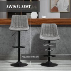 HOMCOM Breakfast Bar Stools Set of 2, 59-80cm Sitting Hight Leather Upholstered Bar Chairs – Grey