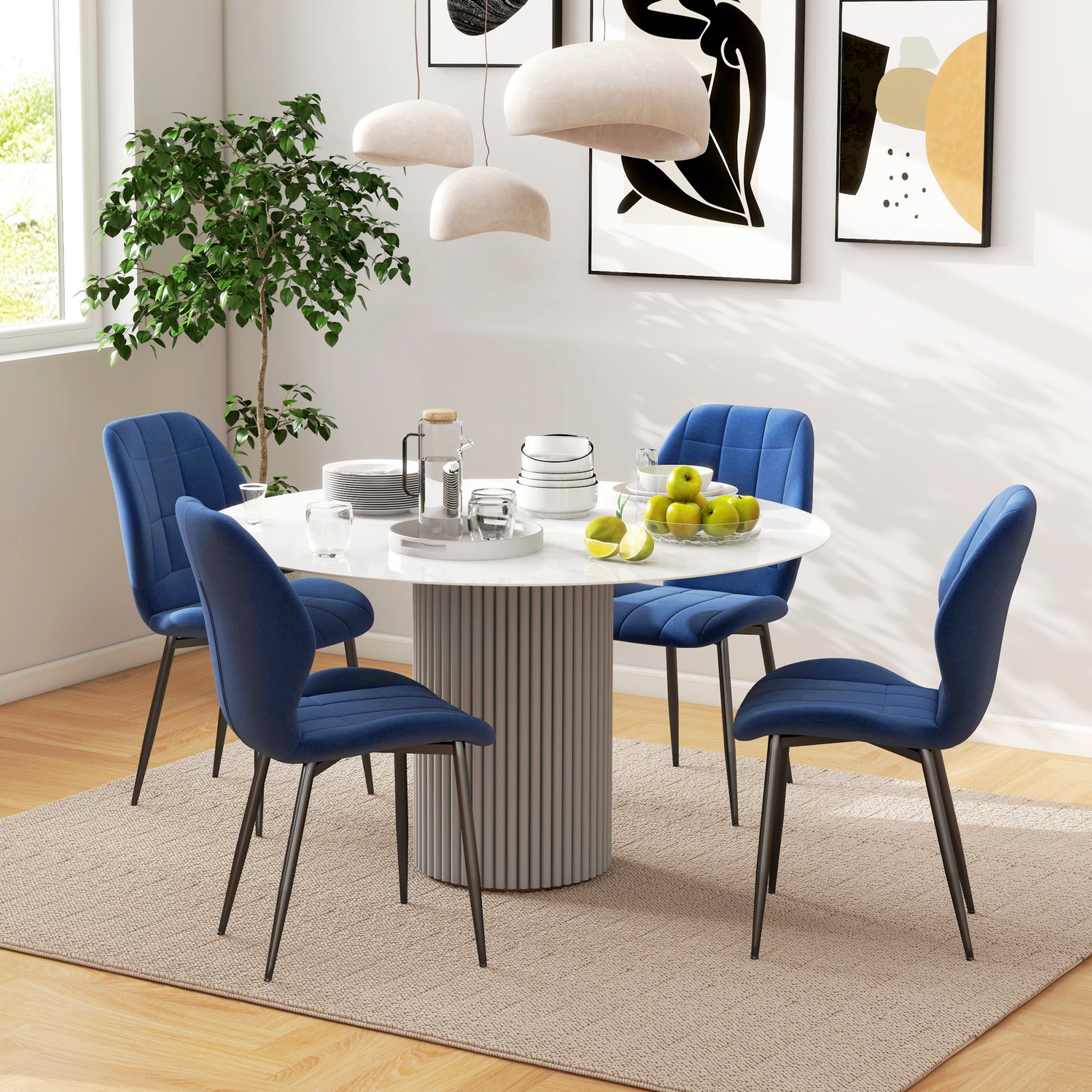 Blending a relaxed design with plenty of comfort, comes this HOMCOM set of four dining chairs. A relaxed tub shape, with no arms, 5cm thick padding and soft velvet-feel upholstery make each accent chair a comfortable piece you’ll love using. Look to the steel frames for strong support; these dining room chairs are finished with foot pads which gently protect your floor from marks.