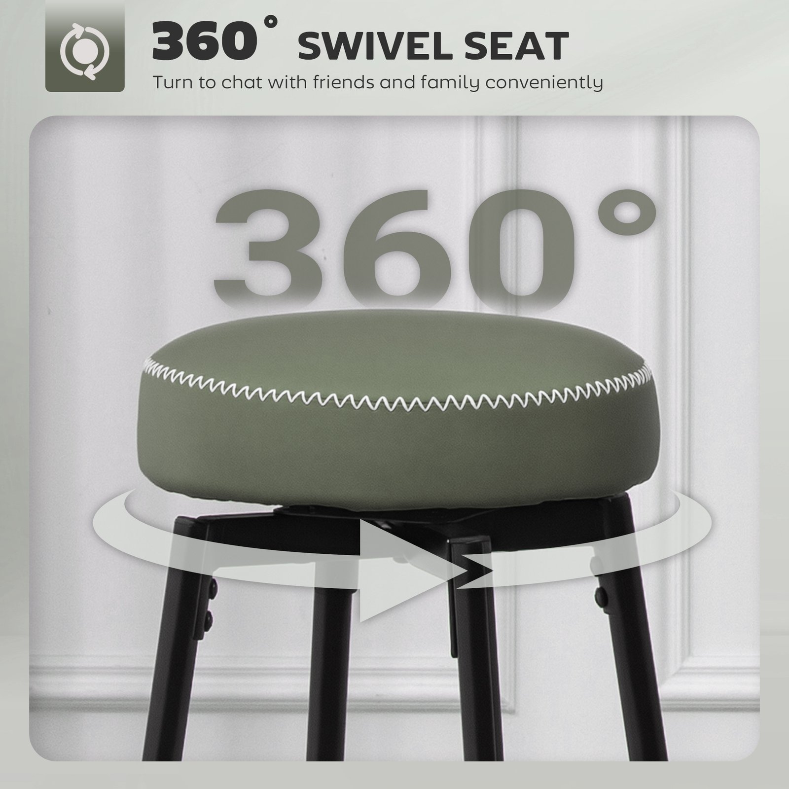 Style, with subtle contrast – look to this set of two HOMCOM bar stools. With faux leather upholstery for a sleek look – the white threads on the edges brings a touch of difference. The 8 cm thick foam cushion keeps you comfortable – ideal for extended times dining and more throughout the home. The powder coated metal frames mean strong, supportive cores – finished with adjustable feet for balance.