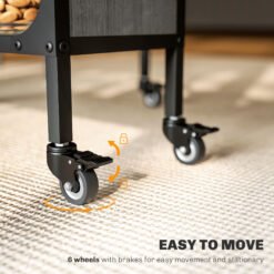- Six wheels on the bottom for easy movement. Six brakes to lock into place