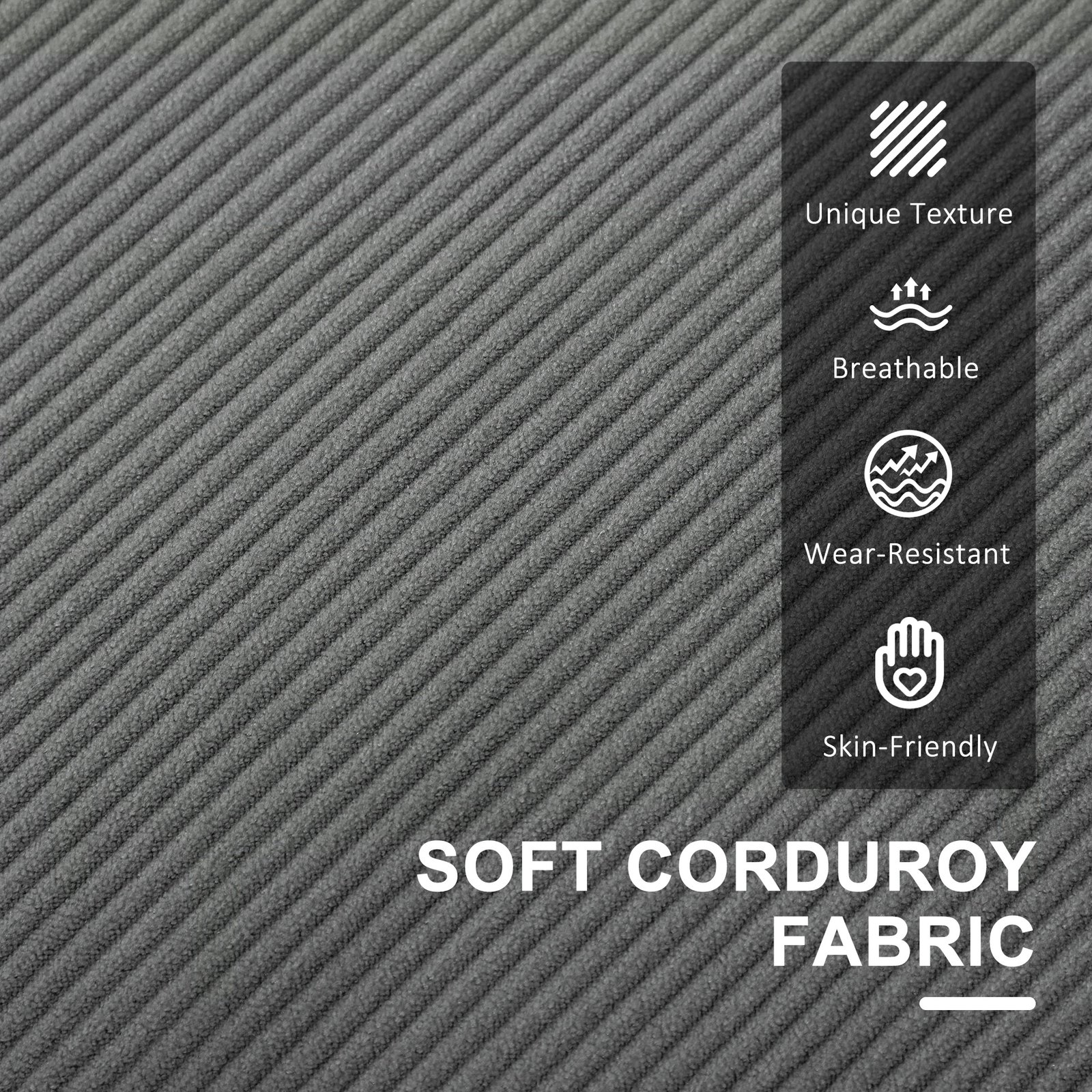 - Materials: Corduroy (100% Polyester), Sponge, Eucalyptus Wood, Rubber Wood