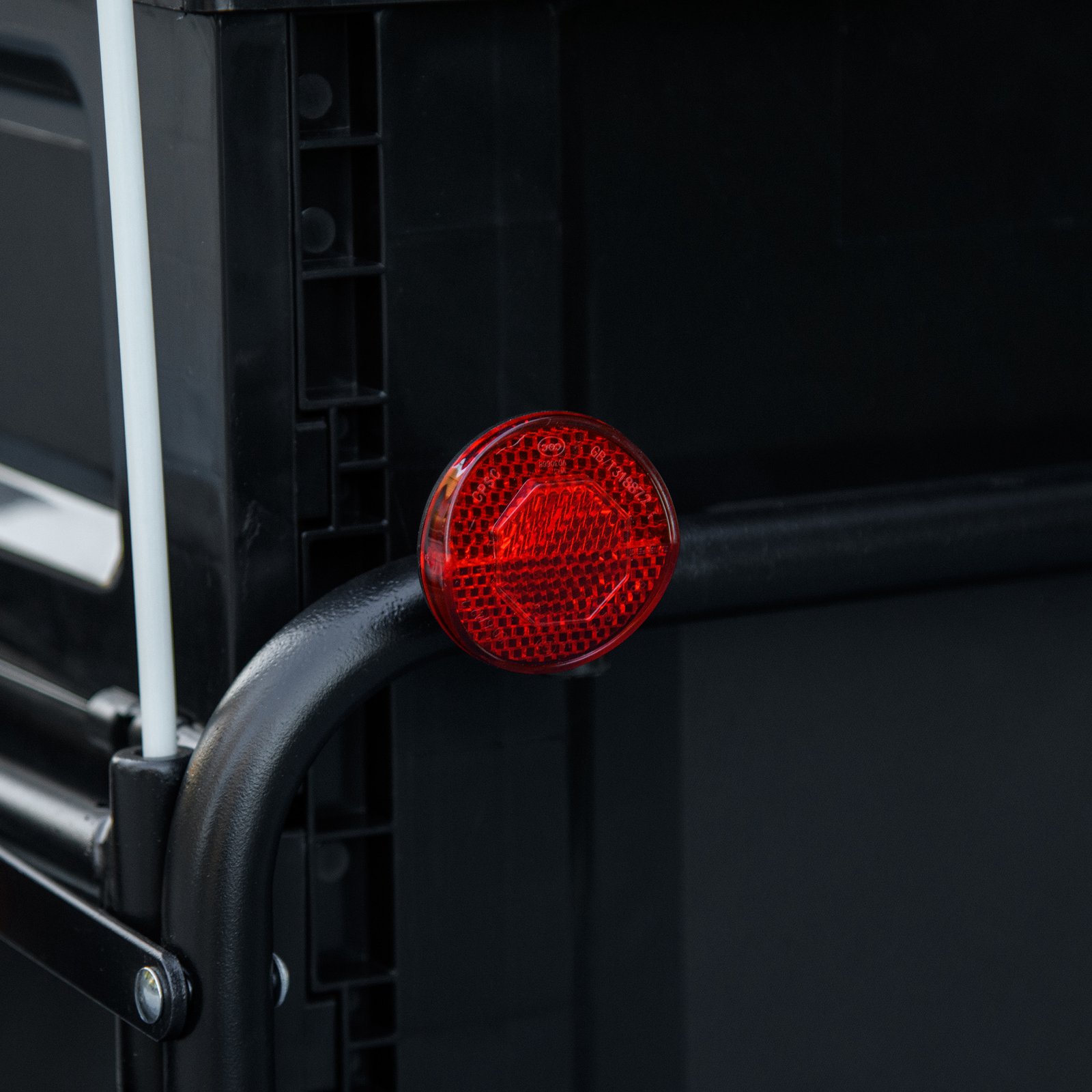 Safety with moving storage. This HOMCOM bike cargo trailer features red flag, reflectors and reflective strips on the wheels, keeping you visible whilst on-the-move. The 65L box offers storage for smaller items. A steel frame for a strong core, fitted with large wheels to move along smoothly.